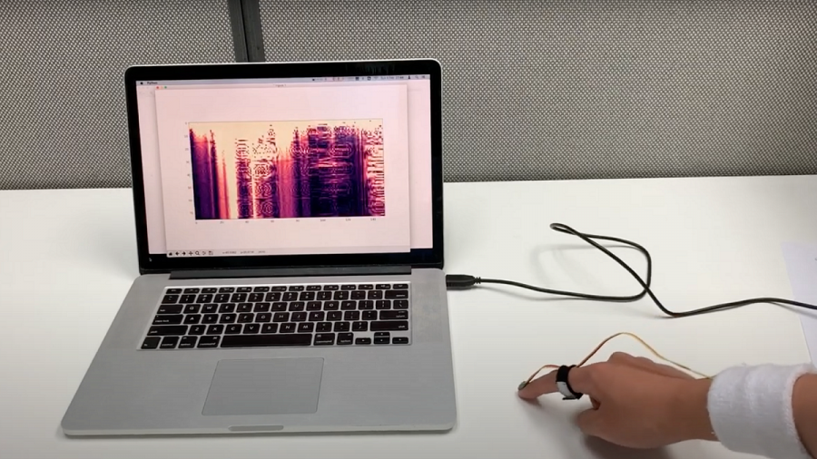 A finger held in the air exhibits microvibrations, which are reduced when it touches a static object. When a finger moves along a surface, the friction between them produces vibrations, which can not be produced with a free-moving finger in the air. With an inertial measurement unit (IMU) capturing such motion characteristics, we demonstrate the feasibility to detect contact between the finger and static objects. We call our technique ActualTouch. Studies show that a single nail-mounted IMU on the index finger provides sufficient data to train a binary touch status classifier (i.e., touch vs. no-touch), with an accuracy above 95%, generalised across users. This model, trained on a rigid tabletop surface, was found to retain an average accuracy of 96% for 7 other types of everyday surfaces with varying rigidity, and in walking and sitting scenarios where no touch occurred. ActualTouch can be combined with other interaction techniques, such as in a uni-stroke gesture recogniser on arbitrary surfaces, where touch status from ActualTouch is used to delimit the motion gesture data that feed into the recogniser. We demonstrate the potential of ActualTouch in a range of scenarios, such as interaction for augmented reality applications, and leveraging daily surfaces and objects for.