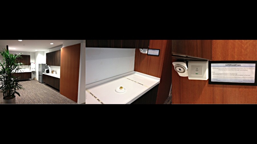SUTDFoodCam is an IP camera mounted in the L2 pantry (next to IDC space), pointing directly down at the counter. If you have any food left after events/meetings or you would like to share some new food with your colleagues, leave them on this pantry top. There is a button on the side wall next to the counter to be pressed when food is left. The button causes an email alert with a snapshot picture to be sent to the SUTDFoodCam mailing list. The whole idea is to promote impromptu introductions and informal social interactions through food sharing. To help protect people’s privacy, the camera is intentionally pointed such a way that only the countertop is seen.